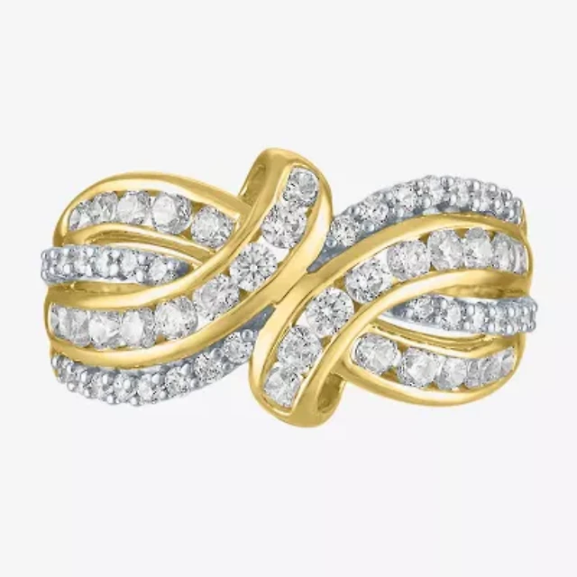 (G-H / I1-I2) Womens 1 CT. T.W. Lab Grown White Diamond 10K Gold Crossover Cocktail Ring
