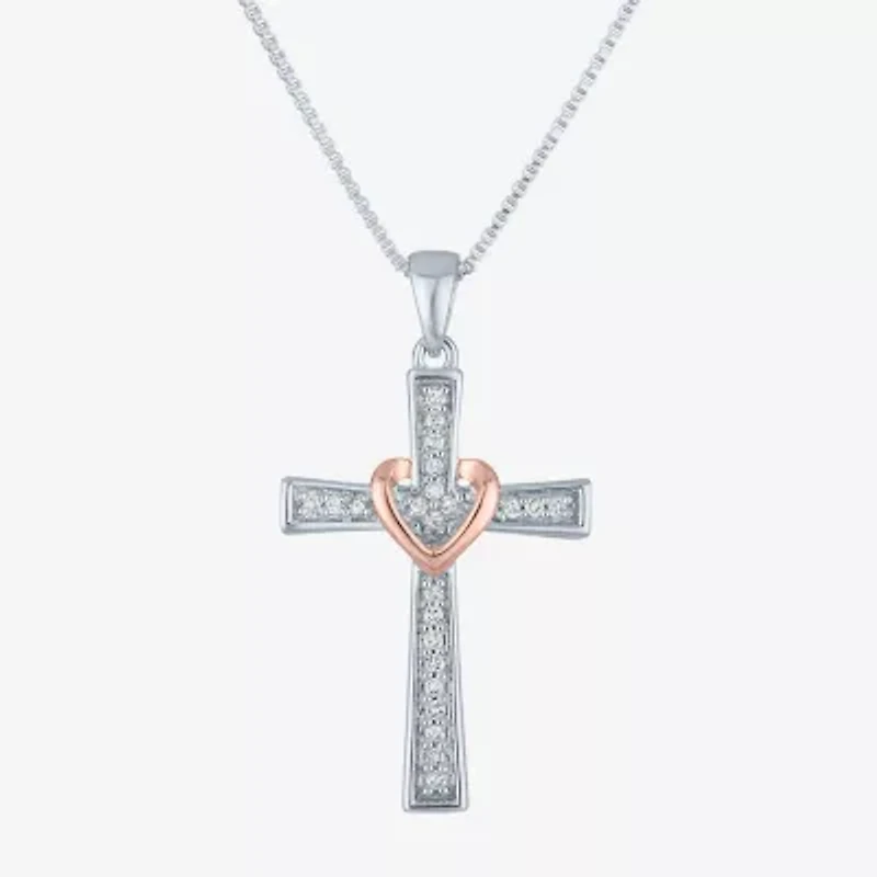 (G-H / I1-I2) Womens 1/10 CT. T.W. Lab Grown White Diamond 14K Gold Over Silver Cross 18 Inch Pendant Necklace