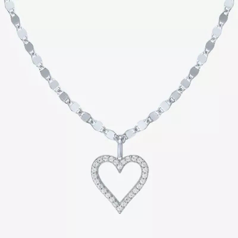 (G-H / I1-I2) Womens 1/10 CT. T.W. Lab Grown White Diamond 14K Gold Over Silver Heart 18 Inch Pendant Necklace in San Juan, PR