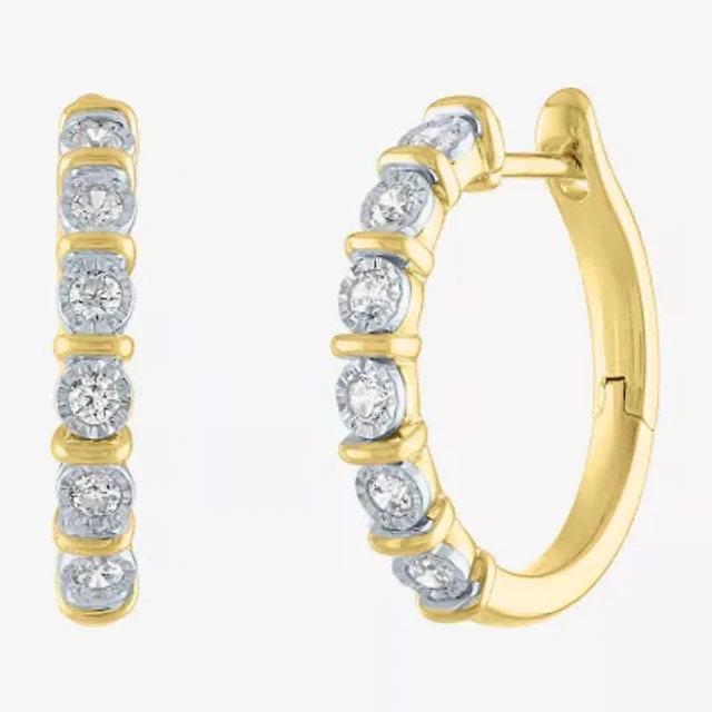 (G-H / I1-I2) Womens 1/6 CT. T.W. Lab Grown White Diamond 10K Gold 13.5mm Hoop Earrings