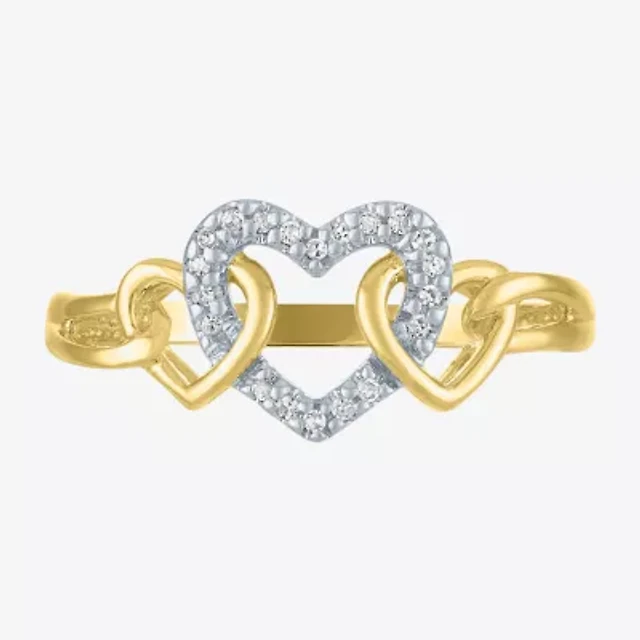 Womens 1/10 CT. T.W. Lab Grown White Diamond 10K Gold Heart Cocktail Ring