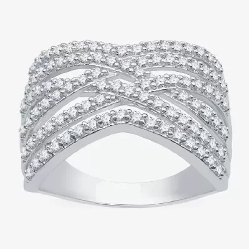 (G-H / I2-I3) Womens 3MM 1 CT. T.W. Lab Created White Diamond Sterling Silver Crossover Band in San Juan, PR