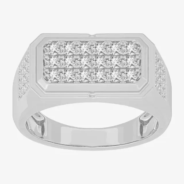 (G-H / SI1-SI2) Mens 1 CT. T.W. Lab Grown White Diamond or Yellow 10K Gold Rectangular Fashion Ring