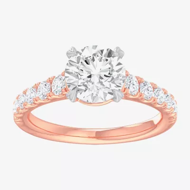 G-H / Si1-Si2) Womens 1/ CT. T.W. Lab Grown White Diamond 14K Gold Round Side Stone Engagement Ring