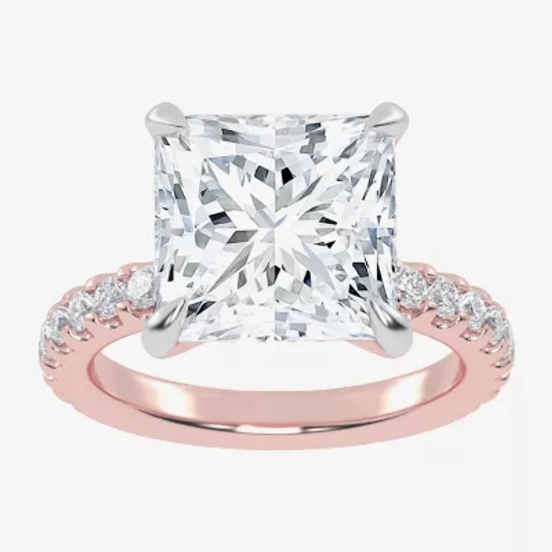 This women's engagement ring is a sparkling beauty you'll love wearing to celebrate your forever after. This hidden halo ring features a 2 carat princess-cut Lab-Grown Diamond center stone and smaller round-cut stones on the sides set in 14K White Gold.