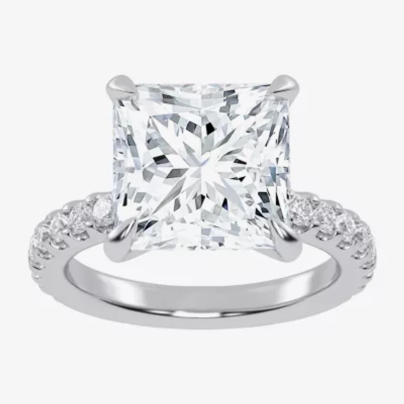 This women's engagement ring is a sparkling beauty you'll love wearing to celebrate your forever after. This hidden halo ring features a 2 carat princess-cut Lab-Grown Diamond center stone and smaller round-cut stones on the sides set in 14K White Gold.