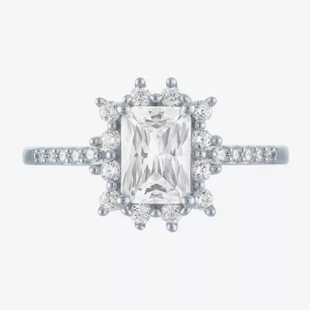 (G-H/ Si2-I1) Womens 1 CT. T.W. Lab Grown White Diamond 10K White Gold Side Stone Cocktail Ring