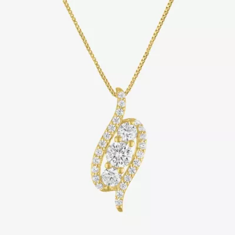 (G-H / Si2-I1) Womens 1 CT. T.W. Lab Grown White Diamond 14K Gold Over Silver 18 Inch Pendant Necklace
