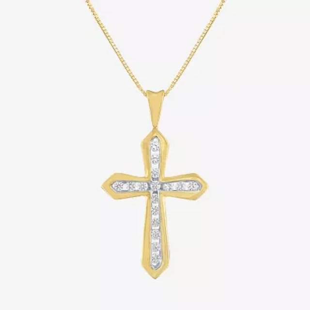 (G-H / Si2-I1) Womens 1/3 CT. T.W. Lab Grown White Diamond 10K Gold Cross Pendant Necklace