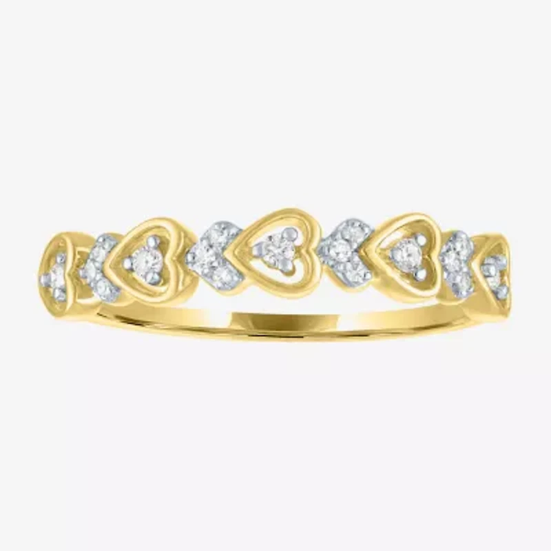 (G-H / Si2-I1) Womens 4MM 1/10 CT. T.W. Lab Grown White Diamond 10K Gold Heart Wedding Band