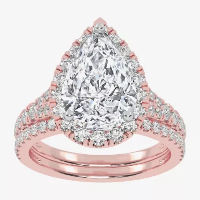 G-H / Vs2-Si1) Womens 4 3/4 CT. T.W. Lab Grown White Diamond 14K Rose Gold Pear Side Stone Halo Bridal Set