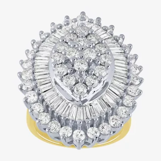 Womens 4 CT. T.W. Lab Grown White Diamond 10K Gold Marquise Cluster Halo Cocktail Ring