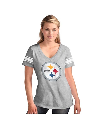 G-iii 4Her by Carl Banks Women's Heather Gray Minnesota Vikings First Pick Distressed V-Neck T-Shirt