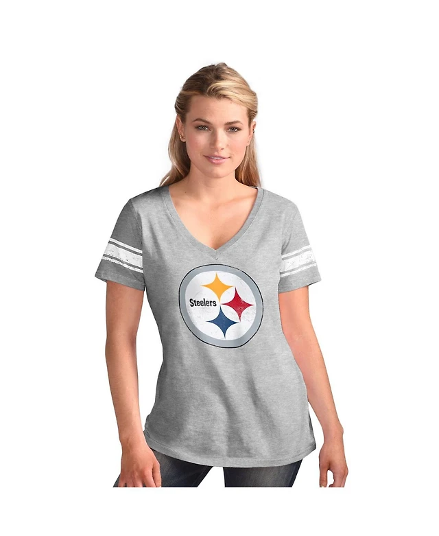 G-iii 4Her by Carl Banks Women's Heather Gray Pittsburgh Steelers First Pick Distressed V-Neck T-Shirt