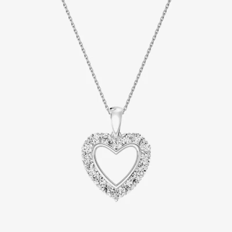 (G / Si1-Si2) Womens 1 CT. T.W. Lab Grown White Diamond Sterling Silver Heart 18 Inch Pendant Necklace