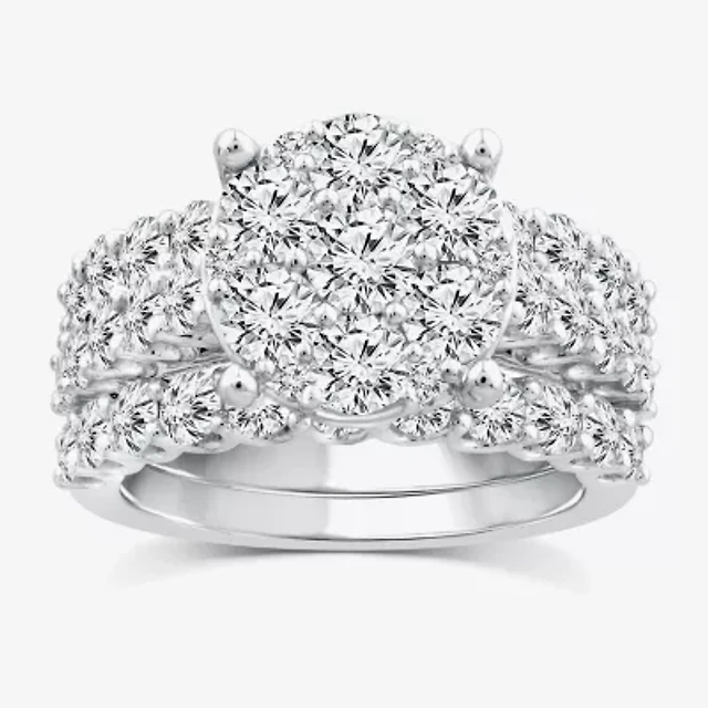 Signature By Modern Bride (G / Si1-Si2) Womens 4 CT. T.W. Lab Grown White Diamond 14K White Gold Side Stone Bridal Set
