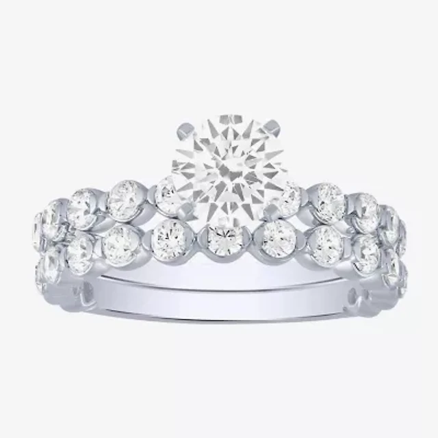 (G / Si2) Womens 2 CT. T.W. Lab Grown White Diamond 10K Gold Round Side Stone Bridal Set