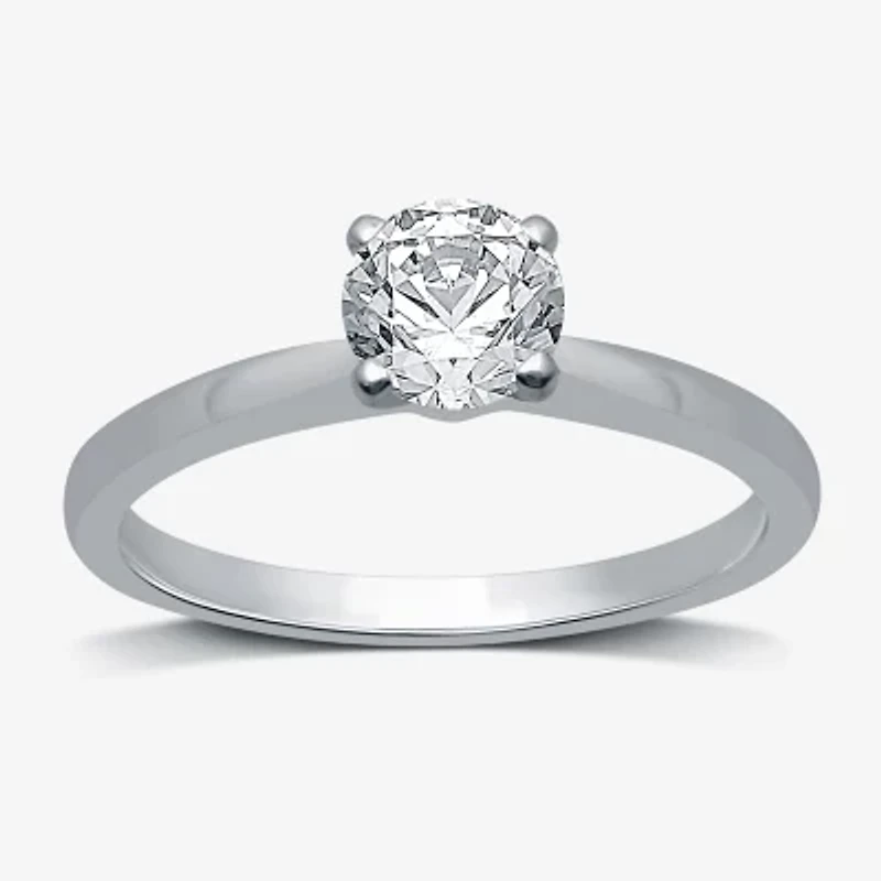 Keep it classy and contemporary with this stunning women's engagement ring, which also offers incredible value. Crafted from 10K White Gold, this solitaire style features a sparkling round-cut Lab-Grown Diamond in a prong setting.