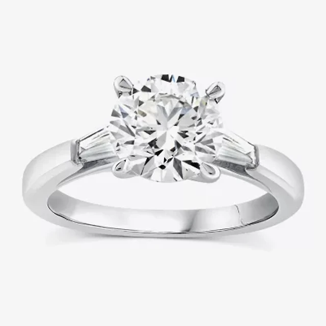 (G / Si1-Si2) Womens 3 CT. T.W. Lab Grown White Diamond 10K Gold Round Side Stone Engagement Ring