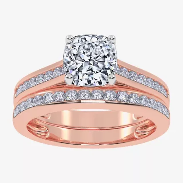 (G / Vs2-Si1) Womens 1 1/2 CT. T.W. Lab Grown White Diamond 10K Rose Gold Round Side Stone Bridal Set