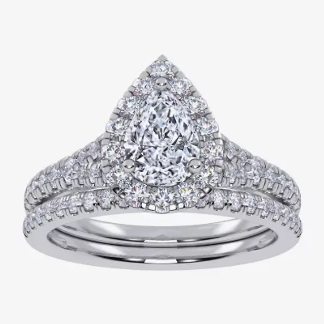 G / Vs2-Si1) Womens 1 CT. T.W. Lab Grown White Diamond 10K Gold Pear Side Stone Halo Bridal Set