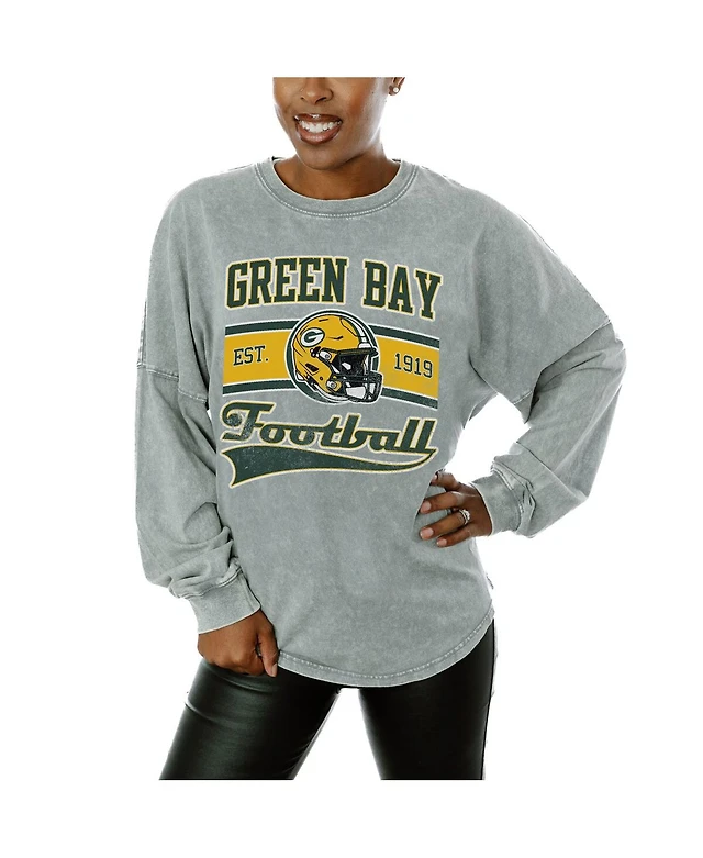 Gameday Couture Women's Gray Green Bay Packers Snow Wash Oversized Long Sleeve T-Shirt