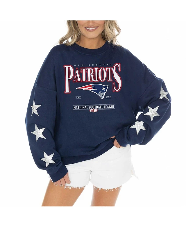 Gameday Couture Women's Navy New England Patriots Rhinestone Star Sleeve Settle the Score Tri-Blend Pullover