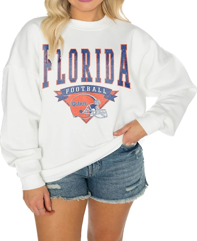 Gameday Couture Women's White Florida Gators Good Vibes Premium Fleece Drop Shoulder Pullover Sweatshirt