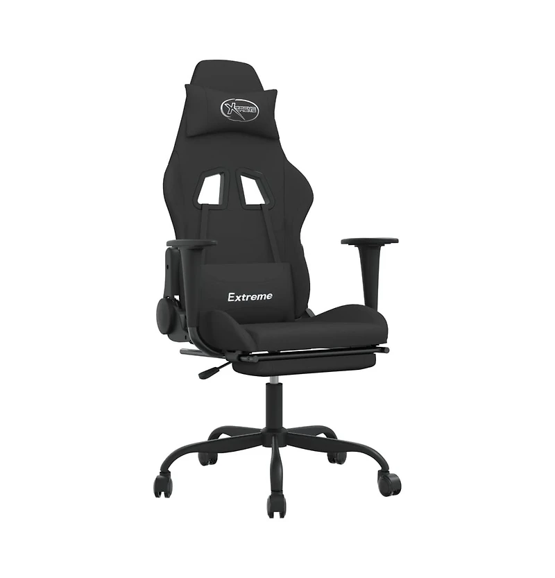 Gaming Chair with Footrest Black Fabric