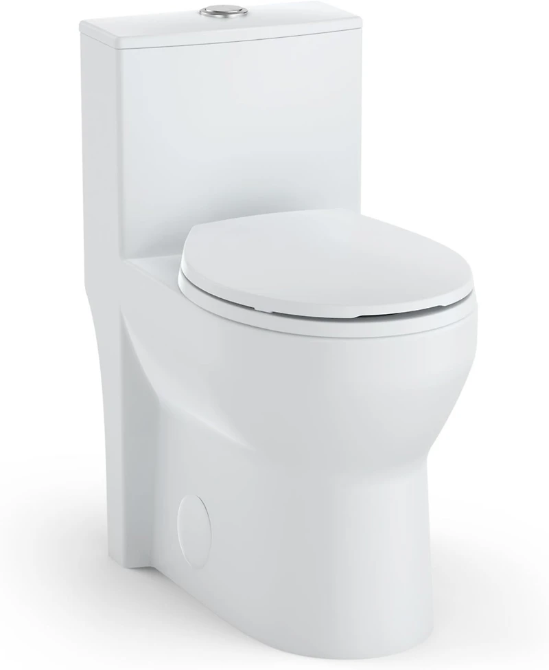 Luxurious Toilets for Bathrooms: Seamless, one-piece toilets design makes a statement with its clean lines and low profile. This compact elongated toilet measures just 14.17 inches wide and 27