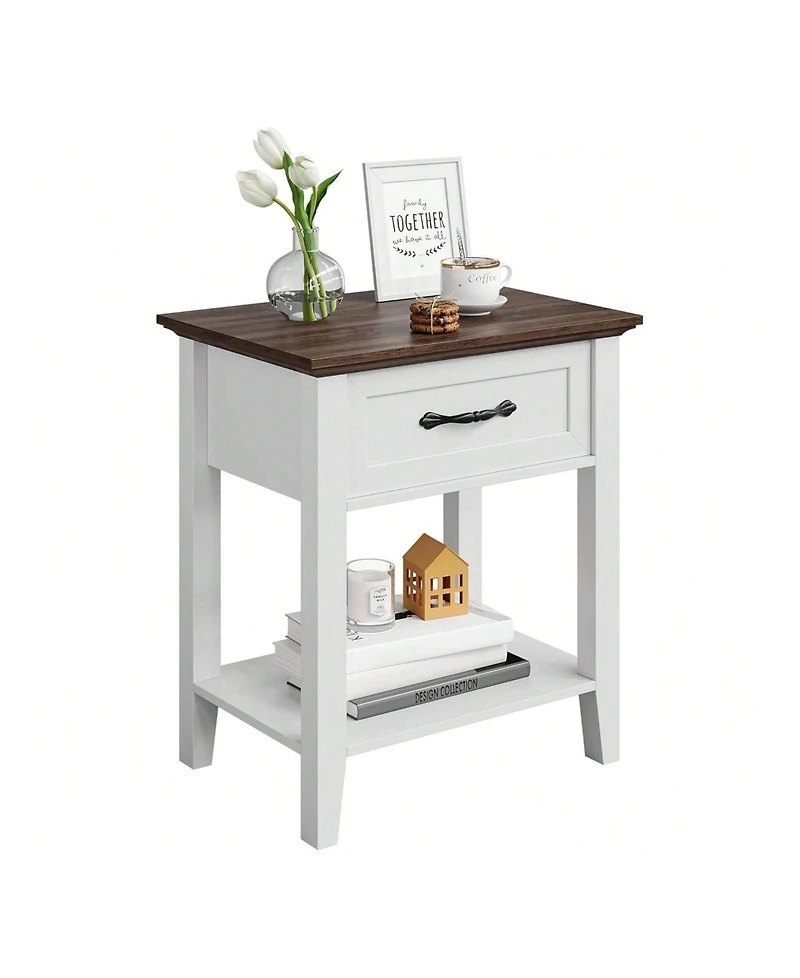 2-Tier Drawer Nightstand End Table, Storage Shelves Side Table for Living Room Study Room Bedroom