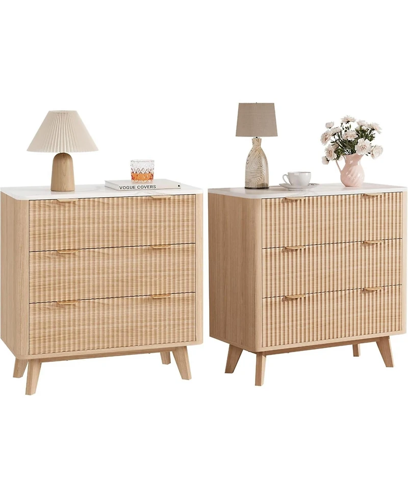 gaomon 32" Width Fluted Nightstand Set of 2, Modern 3 Drawer Bedside Table with Faux Marble Top, Wood Chest of Bedside Table with Curved Profile in San Juan, PR