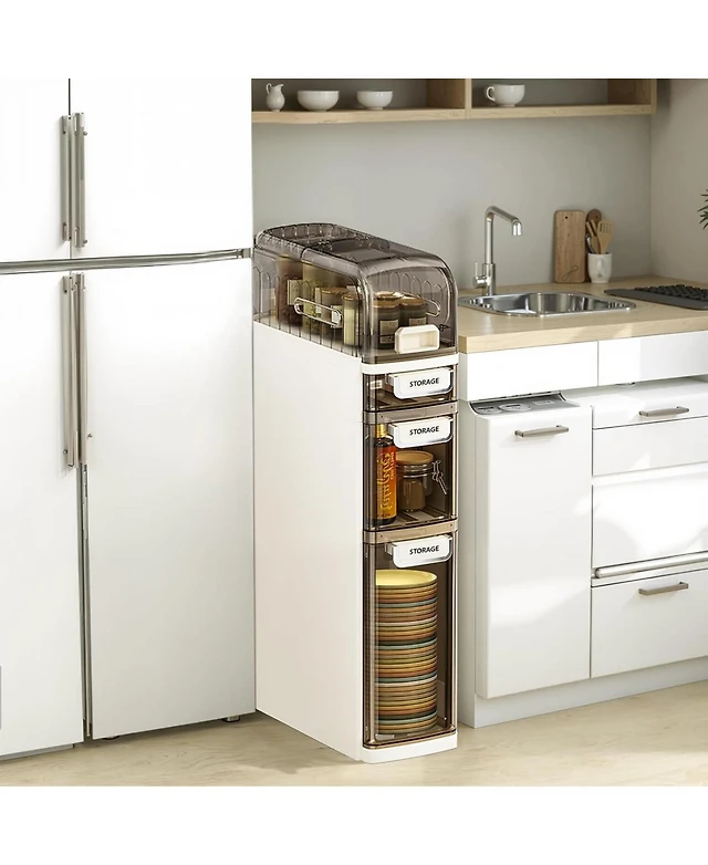 gaomon 4-Tiers Slim Bathroom Storage Cabinet, Narrow Storage Waterproof Skinny Bathroom Cabinet with Wheels and Toilet Paper Holder for Small Spaces