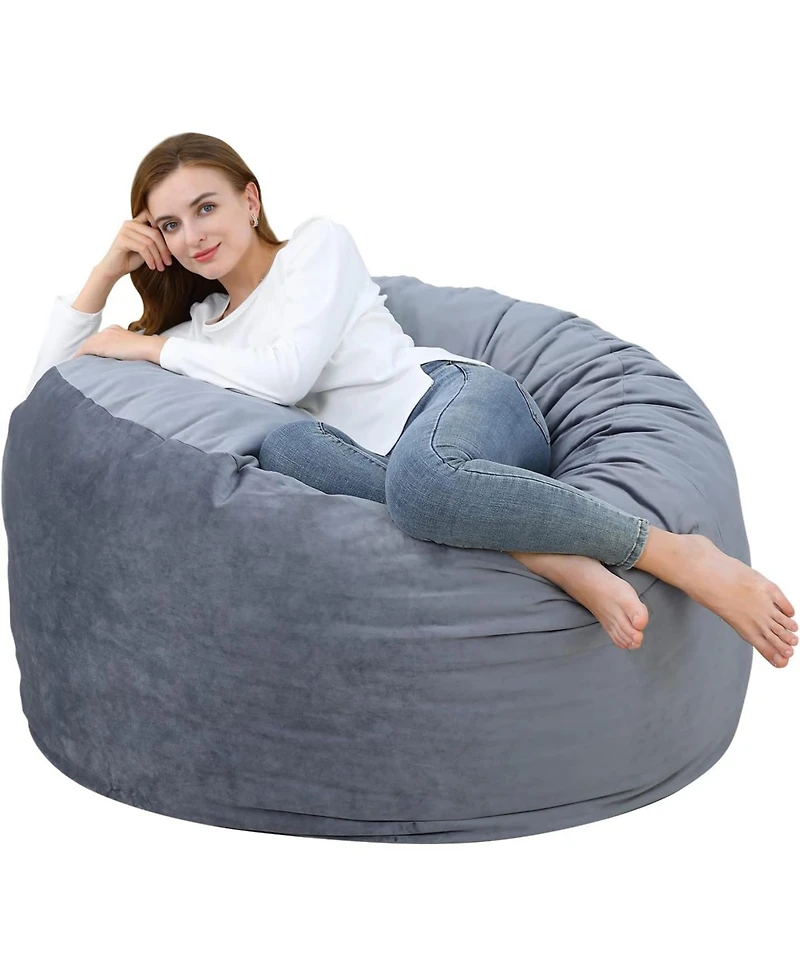 Stretch out in comfort with this 48"" giant bean bag chair! Filled with premium shredded memory foam, it contours to your body for cloud-like support-perfect for adults or kids. The ultra-soft, reinforced velvet cover is machine-washable for easy care. Lightweight and stable with a non-slip base, it makes a cozy addition to any bedroom, playroom, dorm, or living area.