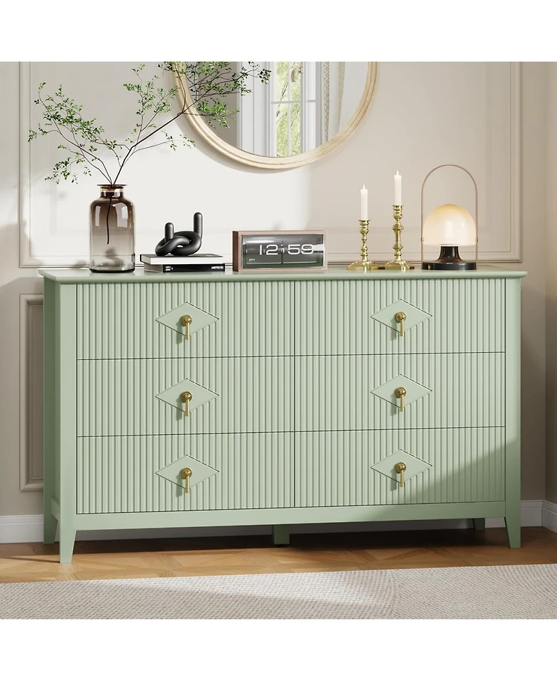 gaomon 54" Wide Fluted Dresser, 6 Drawer Modern Wood Storage Chest for Bedroom or Entryway