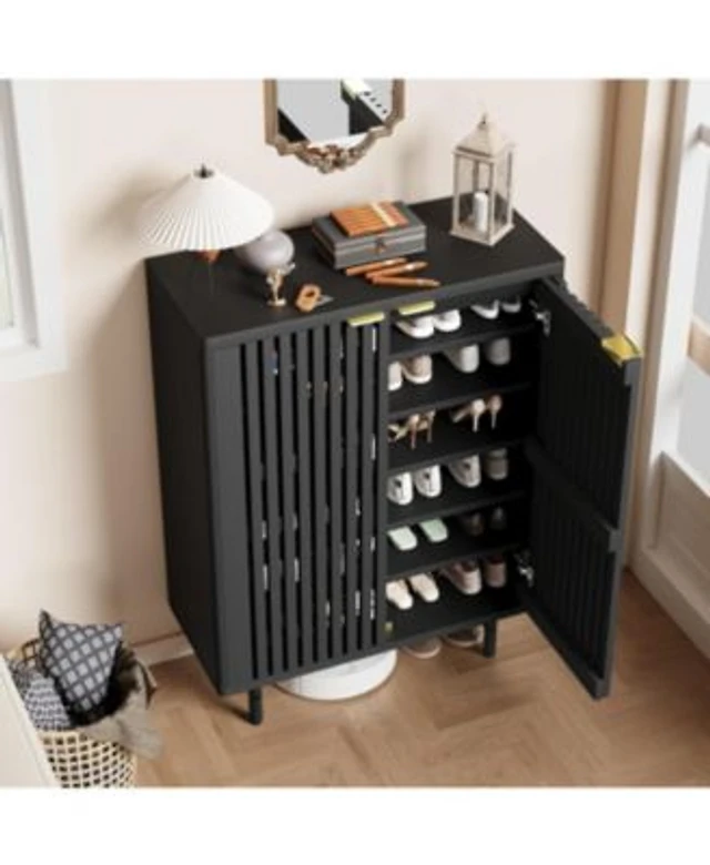 Rainsken Shoe Cabinet with Doors, 5-Tier Shoe Storage Rack with Black Handle, Circular Louvered Door Design, Shoe Organizer for Entryway, Living Room