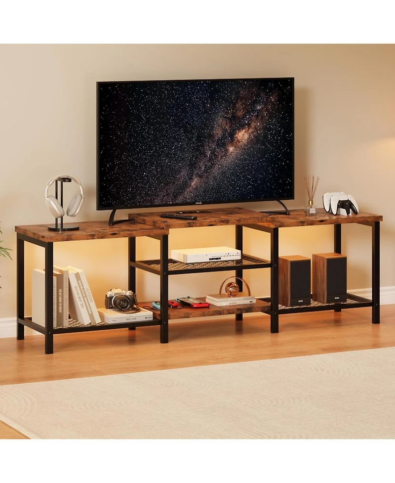 gaomon 75 Inch Wooden Led Entertainment Tv Stand with Power Outlet and Open Storage Shelves