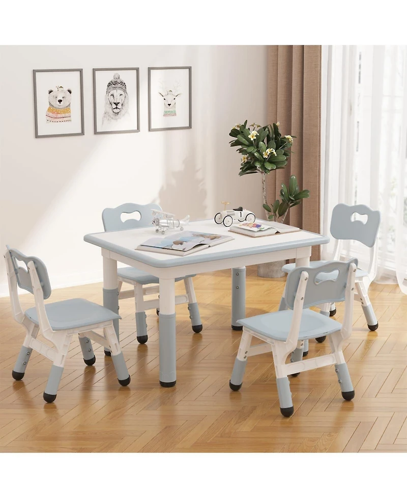Adjustable kids table and 4 ergonomic chairs set with a safe, multi-activity graffiti desktop. Perfect for crafts, study, and play for children ages 2-8, featuring a non-slip design for added safety.