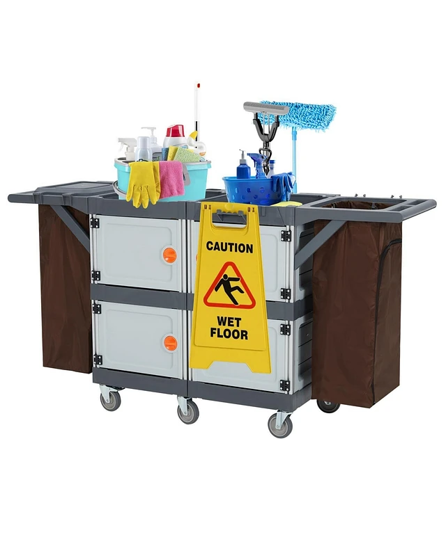 gaomon Commercial Janitorial Cart with Cabinet, 3-ply Multi-Purpose Engineered Plastic Housekeeping Car