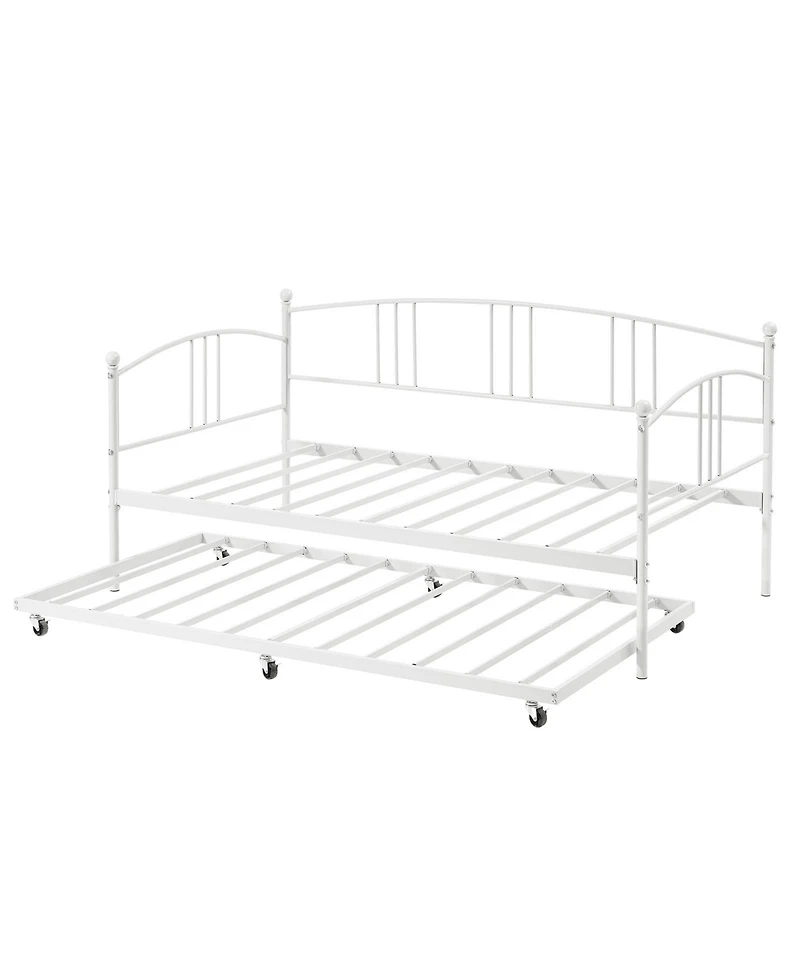 gaomon Daybed with Trundle Twin Arched Headboard Metal Day Bed Steel Slat Support SofaBed for Bedroom Living Room