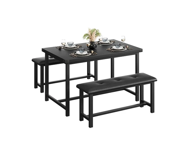 gaomon Dining Table Set for 4, Kitchen with 2 Upholstered Benches, 3 Piece Room Set, Rectangular Space Saving