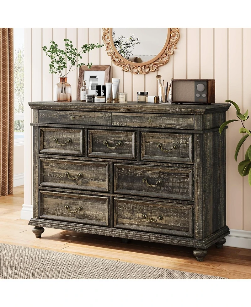 gaomon Dresser for Bedroom 48 in Wide 9 Drawer Chest Wooden Clothes Organizer for Closet Retro Handles
