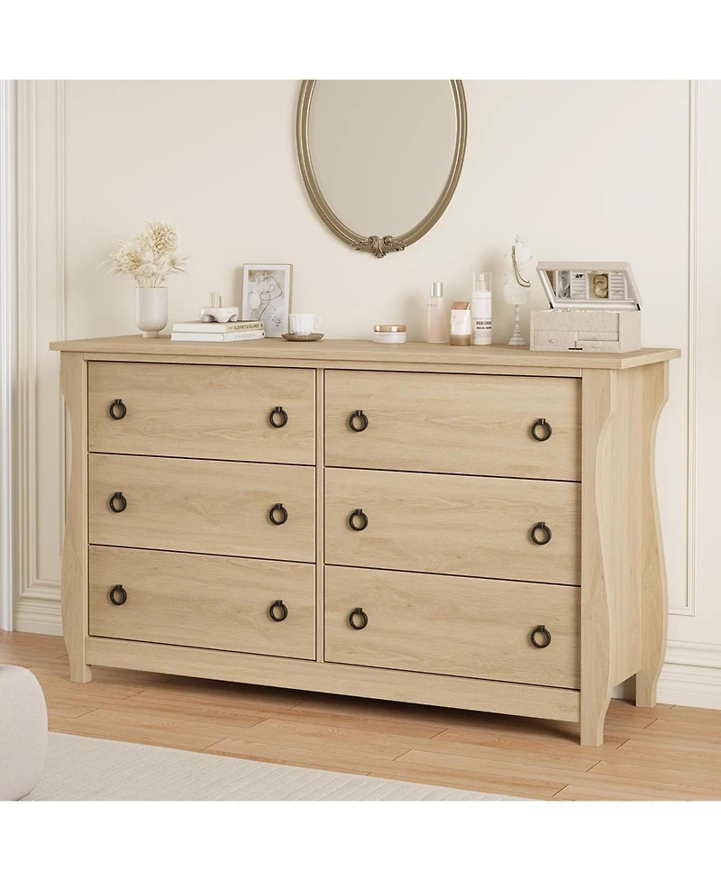 gaomon Dresser for Bedroom, Modern Wood Drawer Dresser with Ring Pull Handles, Wide Chest of Drawer, Storage Organizer for Living Room