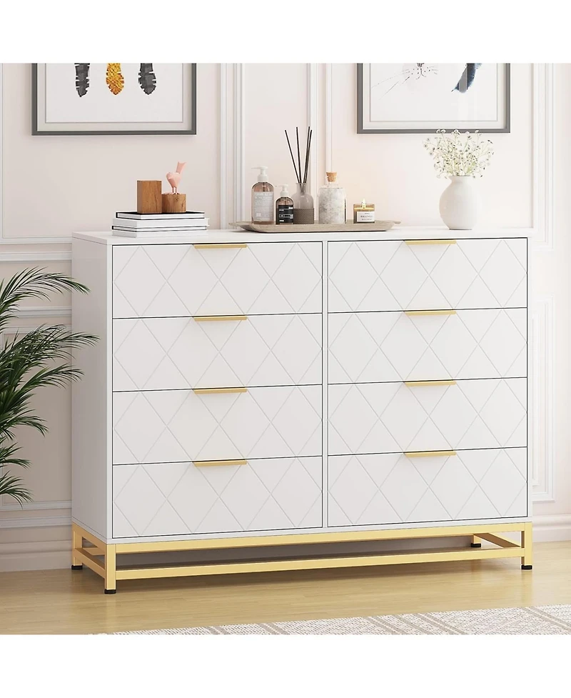gaomon Dresser for Bedroom with 8 Drawer, Tv Stand Dressers Chest of Drawers Large Wood Dresser for Storage and Organization