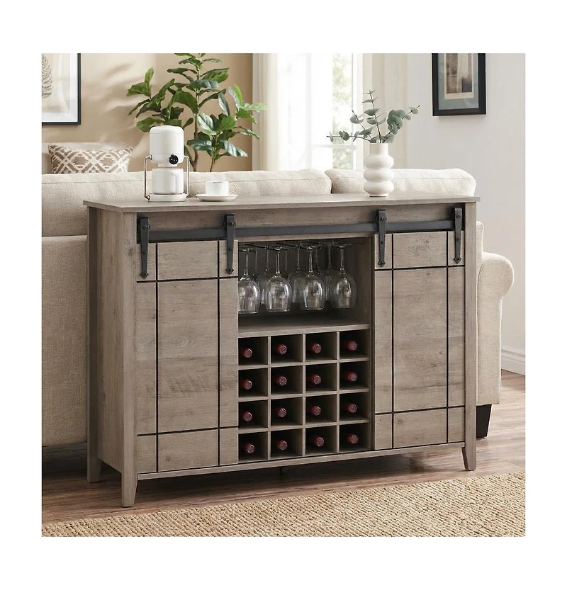 gaomon Farmhouse Bar Cabinet with Sliding Barn Doors, Rustic Liquor & Coffee Station with Wine Glass Racks & Adjustable Shelves in San Juan, PR