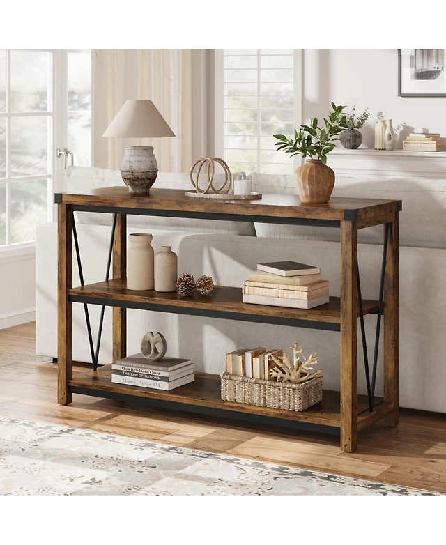 Farmhouse Entryway Table,47 Inch Narrow Long Console Table with Storage, 3 Tier Wood Console Table for Living Room