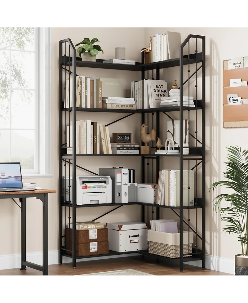 gaomon Industrial L-Shaped Corner Bookshelf, 5-Tier Bookcase Storage Display Shelf