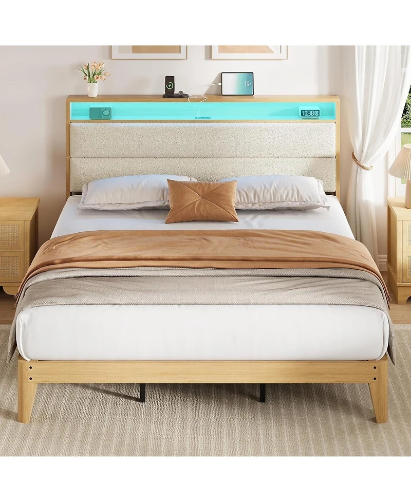 gaomon King Upholstered Bed Storage Headboard Led Boucle Platform Charging Station No Box Spring Easy Assembly