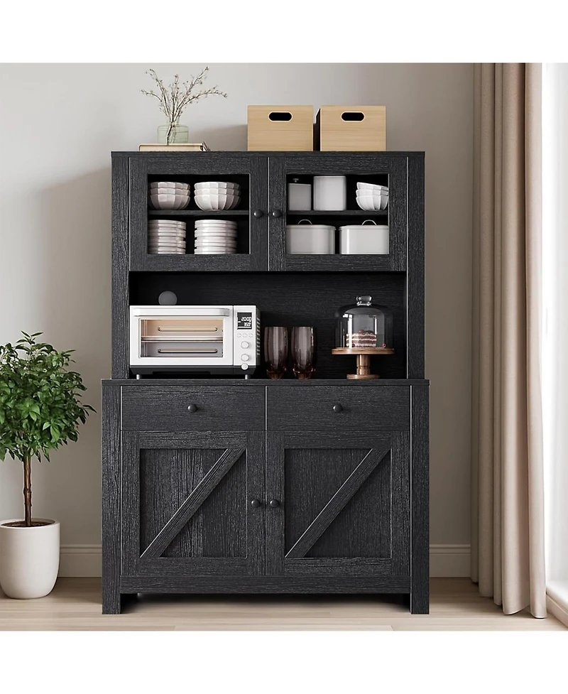 gaomon Kitchen Cabinet with Microwave Stand & Drawers, Large Storage Hutch Adjustable Shelves, Freestanding Coffee Bar Station for