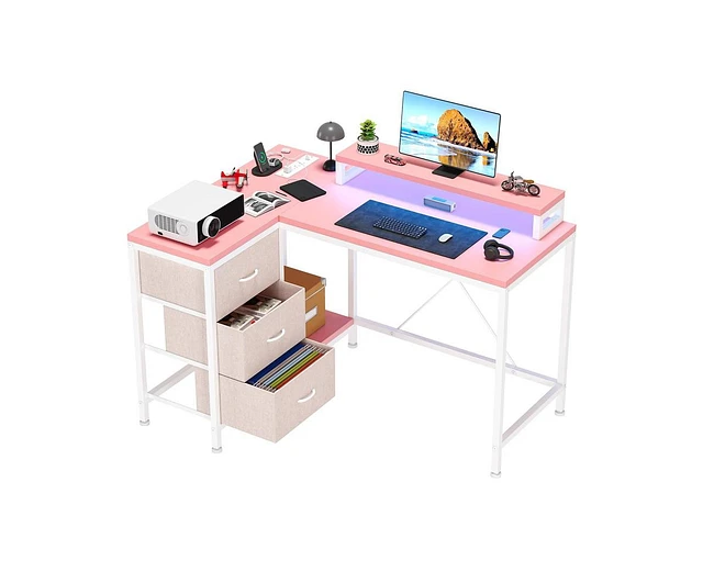 gaomon L Shaped Desk with Power Outlets & Led Lights, Computer Desk with Drawers & Shelves